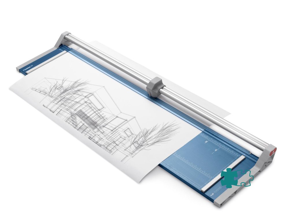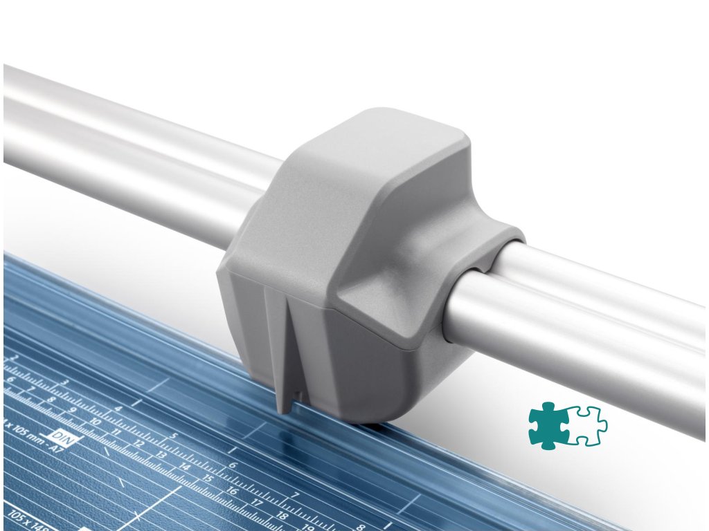 Profesionálna rezačka s kovovou základňou a presným rezom na grafické účely (filmy, fólie, papier). Kruhový nôž umiestnený v plastovom ochrannom kryte sa automaticky brúsi pri rezaní o protinôž - oba nože z tvrdenej ocele. Dvojitá vodiaca lišta pre absolútne presné rezanie. Automatický prítlak pohybom rezacej hlavy, zadný doraz. Mierka v cm/inch. Na pracovnom stole sú vyznačené formáty DIN. Možnosť montáže na stenu.Dĺžka rezu: 1300 mm