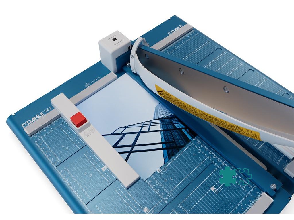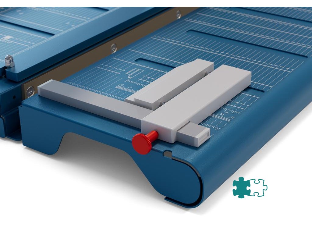 Protišmiková, robustná a presná páková rezačka s kovovou základňou a automatickým prítlakom. Brúsený vrchný a spodný nôž z kvalitnej nožiarskej ocele Solingen, rotujúci kryt okolo ostria. Presná mierka v cm/ inch a DIN formátoch. Výrez na spodnej časti na pohodlné prenášanie. Veľkosť stola 460 × 490 mm. Komfortná výbava s podporným predným stolom a zariadením na rezanie tenkých prúžkov a laserovým lúčom, indikujúcim reznú líniu.Pohodlná práca vďaka ergonomickej rukoväti optimalizovanej pre prenos sily zhora. Automatické, odnímateľné upnutie pre väčšie pohodlie pri rezaní materiálov citlivých na tlak.