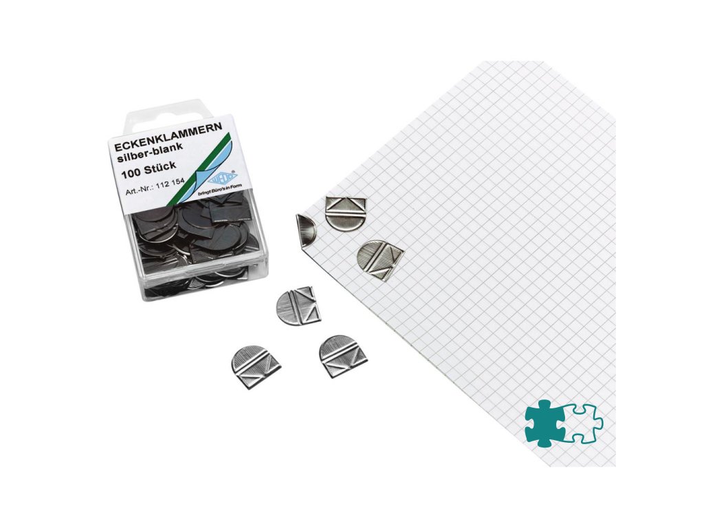 Spony z lešteného kovu na rýchle a ľahké zopnutie materiálu v jednom z rohov. Kapacita 2 - 10 listov. Balenie 100 ks.Dodatočné parametre