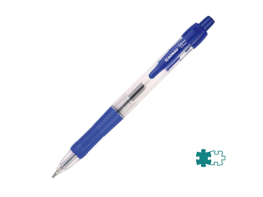 Klikací roller s plastovým klipom a gumeným úchytom vo farbe tuhy. Plnený netoxickým pigmentovým vode odolným atramentom. Telo z plastu, guľôčka 0,5 mm, šírka stopy 0,25 mm, dĺžka stopy 400 m. Väčšie balenie 12 ks. Náhradná náplň obj. kód DO734610.Farba: modrá