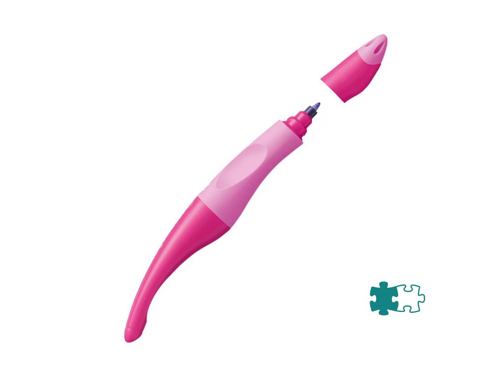 Ergonomicky tvarovaný roller, ktorý píše ako plniace pero. Prevedenie pre pravákov. Vhodný pre deti, ktoré sa učia písať a školákov od 6 rokov. Uvoľnené držanie pomáha proti únave svalstva ruky a bolestiam pri písaní. Úchyt z nekĺzavého materiálu, nový hrot s každou novou náplňou. Plnený zmizíkovateľným atramentom modrej farby.Dodatočné parametre