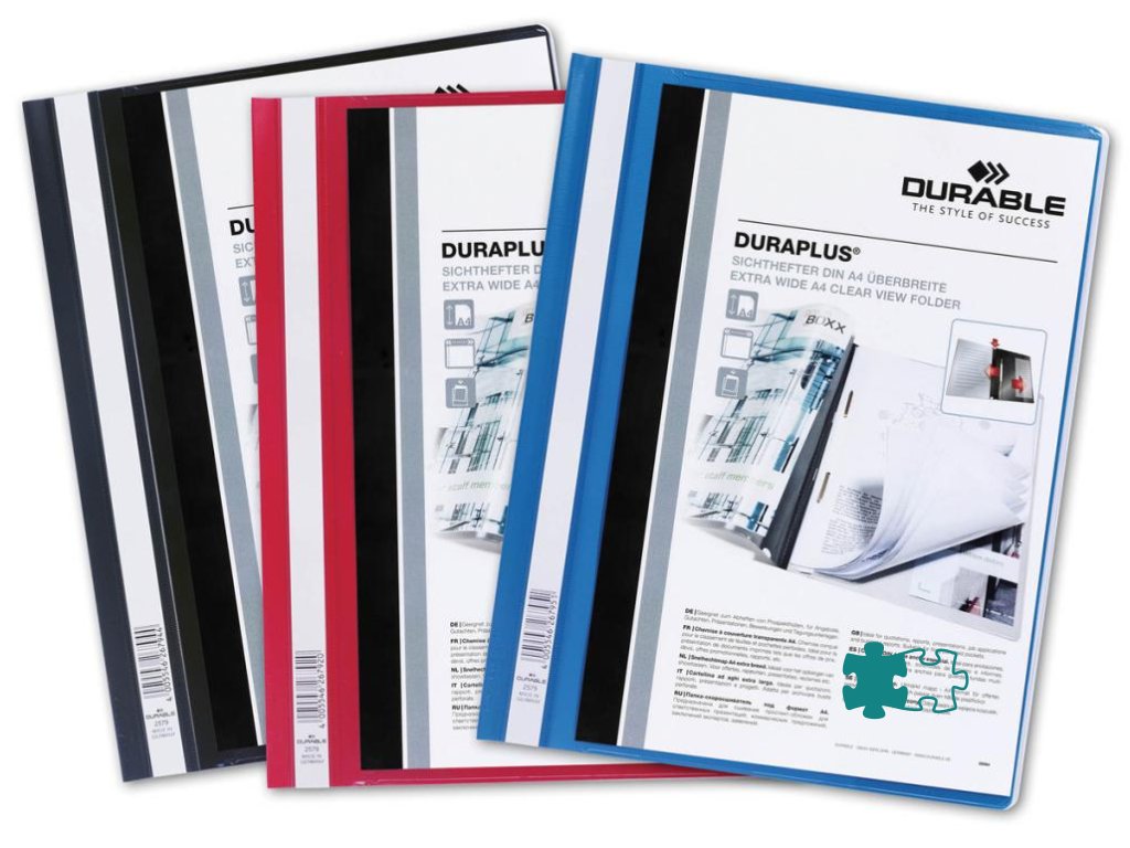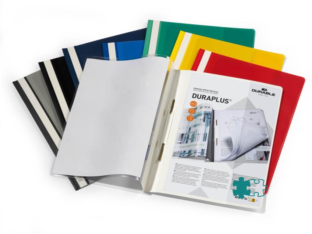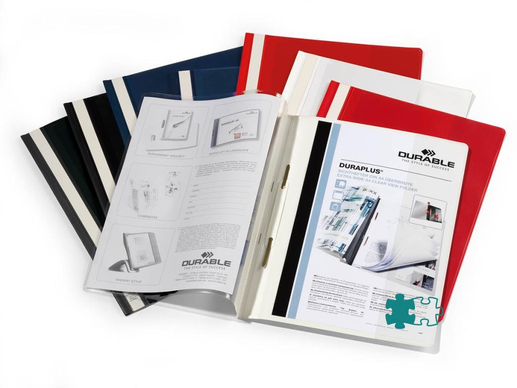 Priehľadný zakladač s farebným zadným krytomArchivujte dierované dokumenty pomocou zakladacieho mechanizmu