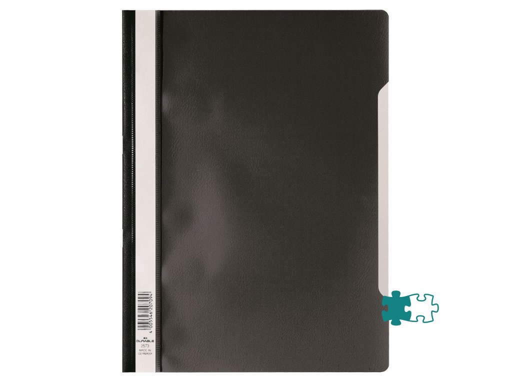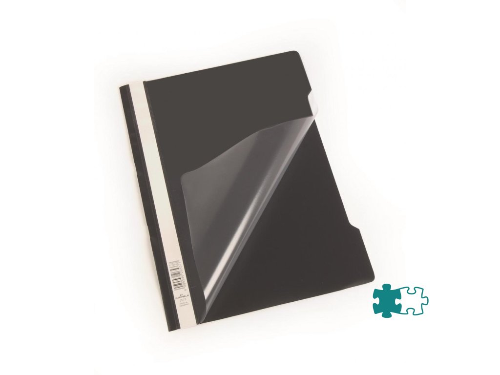 Štandardný polypropylénový rýchloviazač s priehľadnou prednou stranou a nasúvacím popisným pásikom. Formát A4. Balenie 50 ks v jednej farbe. V kombinácii so zakladacím pásikom obj. kód DU2996 02 je možné archivovať rýchloviazač v zakladači.Farba: čierna