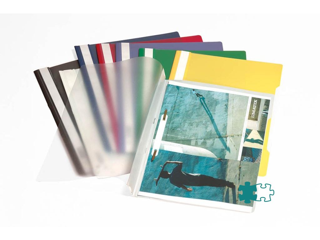 Priehľadný zakladač s farebným zadným krytomArchivujte dierované dokumenty pomocou zakladacieho mechanizmu