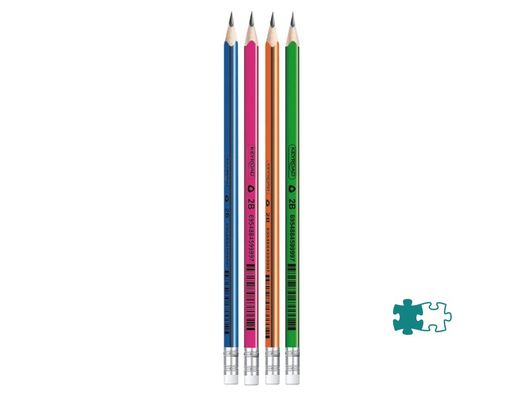 Ceruzka vyrobená z dreva, s gumou, trojuholníkové telo. Tvrdosť: 2B. farba: mix farieb.Dodatočné parametre