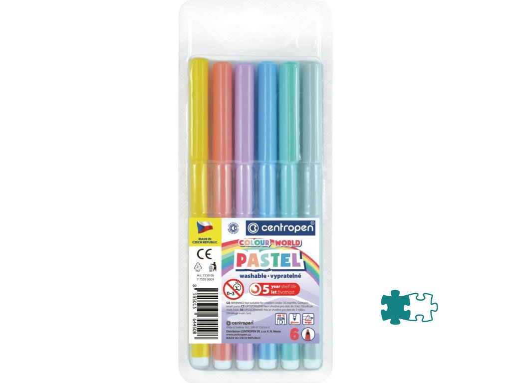 Vyprateľné farebné pastelové popisovače s ERGO držaním odolávajú vyschnutiu až 5 rokov. Zdraviu neškodlivý atrament, ventilačný vrchnák valcový hrot odolný voči zatlačeniu, šírka stopy 1 mm. Sada 6 popisovačov.Dodatočné parametre