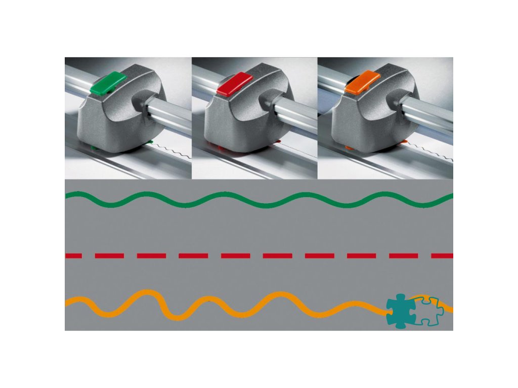 Sada 3 rezných hláv na perforovaný rez, cik-cak rez a vyrobenie ručného okraja, k rezačke DAHLE 507.Dodatočné parametre