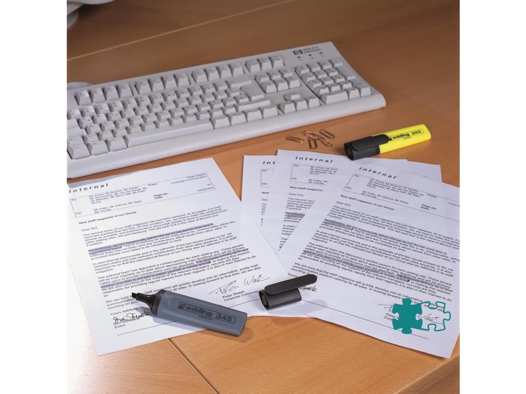 Popisovač so zrezaným hrotom so šírkou stopy 2 - 5 mm. Pre zvýraznenie textových pasáží, výstupov z atramentových tlačiarní, poznámok a pod. Vodovzdorný pigmentový atrament so silne svietivými a intenzívnymi farbami. Vhodný pre InkJet - pri zvýrazňovaní textov tlačených na atramentových tlačiarňach sa atrament nerozpíja. Dopĺňateľný atramentom HTK 25. Sada 4 farieb.Farba: 4 farby
