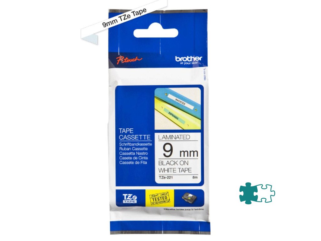Laminovaná páska TZe vhodná pre všetky tlačiarne štítkov Brother. Odoláva teplotám od -50 do 300 °C, je odolná voči slnečnému žiareniu, vlhkosti, mechanickému poškriabaniu, prachu a iným nečistotám a olejovým kvapalinám. Dĺžka pásky 8 m.Šírka: 9 mm