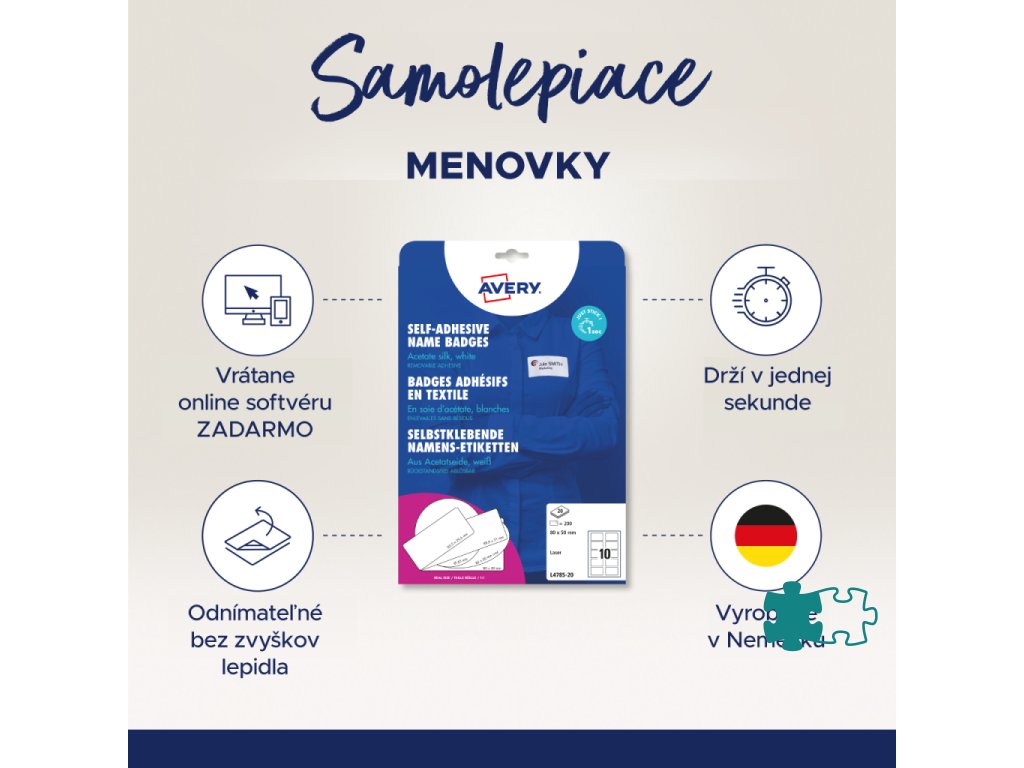 Samolepiace menovky Avery na textil 80x50mm, materiál acetátový hodváb