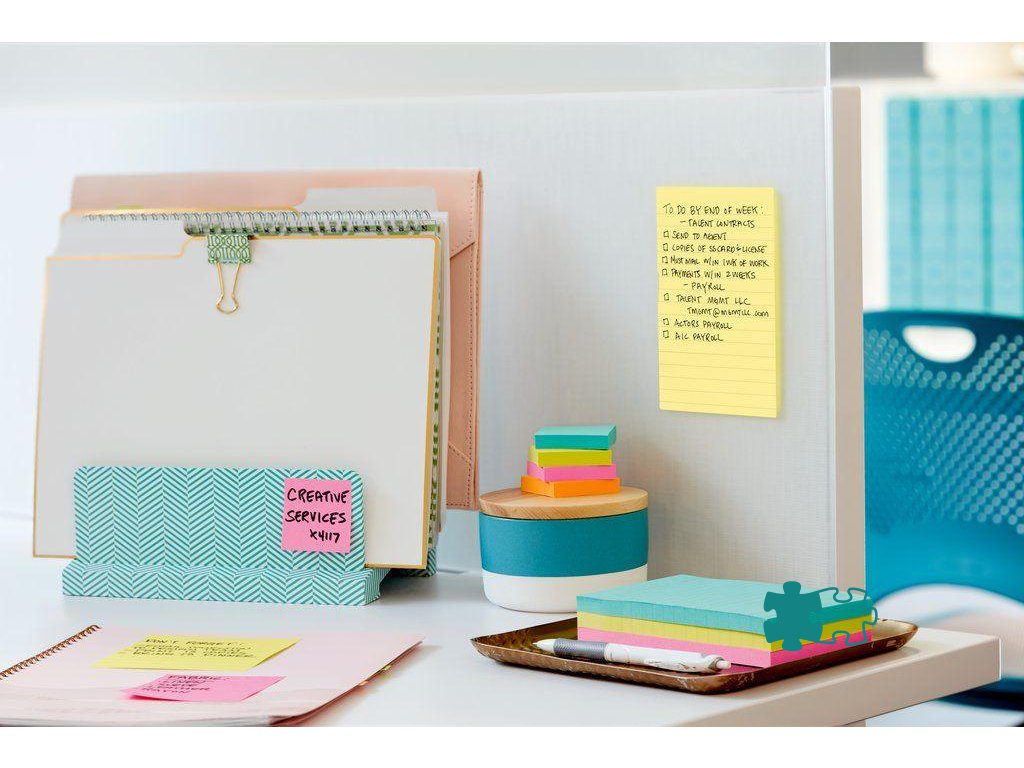 Žlté samolepiace bločky vo veľkom formáte so štvorčekmi, určené pre štruktúrované poznámky a zefektívnenie organizácie práce. Väčšie balenie 6 × 100 lístkov. Rozmery: 102 x 152 mm. Počet lístkov: 100.- Keď potrebujete mať všetky poznámky na jednom Post-it® Bločku.