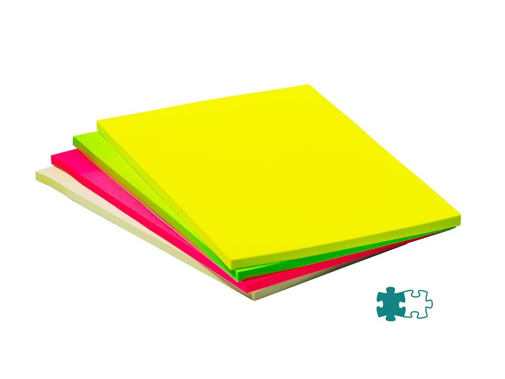 Extra veľký formát, intenzívne farby, použiteľné aj ako cestovné lepiace poznámky pre obzvlášť dlhé správy. Bezpečne priľnú, dajú sa odstrániť bez zanechania zvyškov a znovu použiť. Papier 70g, 45 listov na farbu. Farby: pastelová žltá, neónovo žltá, neónovo zelená, neónovo ružová. Počet lístkov 4x45. Rozmer 101 x 150 mm.Dodatočné parametre