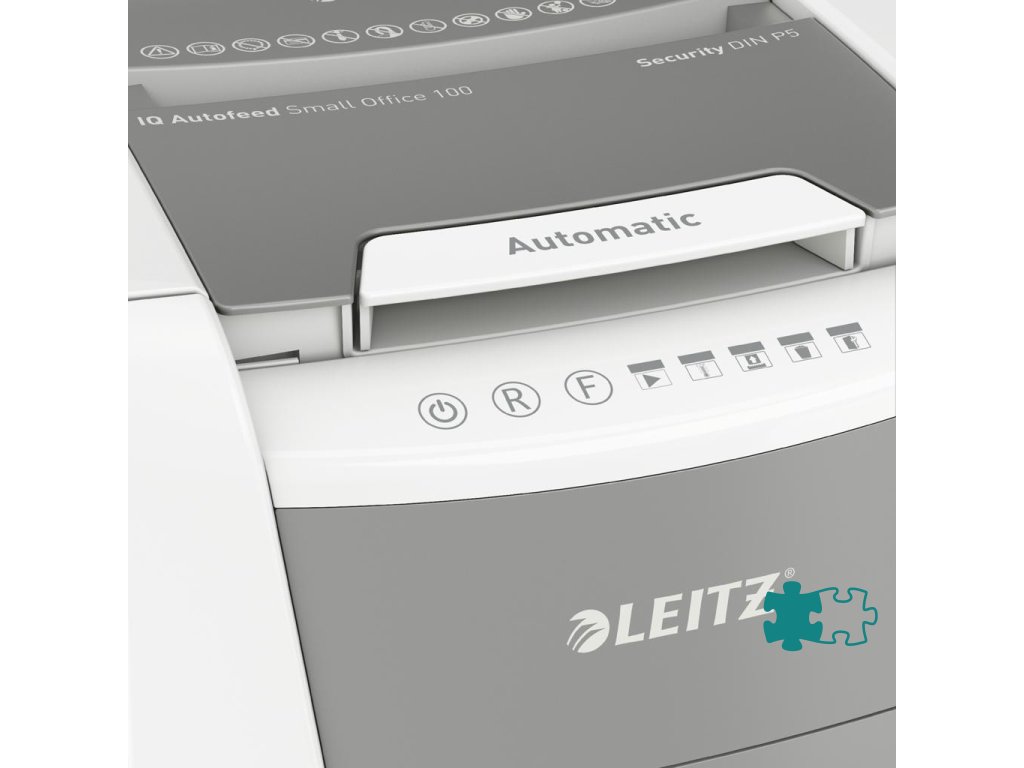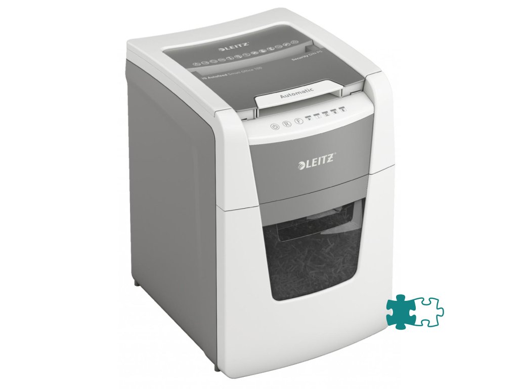 Plnoautomatická skartovačka na papier od firmy Leitz s jedinečnou čistou vyprázdňovacou funkciou. Je taká inteligentná, že potichu pracuje sama, len vložíte stoh papiera (vrátane kancelárskych sponiek a sponiek do zošívačky), zatvoríte veko a môžete ísť za svojou robotou. Ideálna na používanie v malej kancelárii. Mimoriadne dôveryhodná a vysokovýkonná skartovačka s automatickým podávaním, s funkciou proti zaseknutiu papiera, tichá a s dlhou dobou prevádzky (20 minút). Automaticky skartuje 100 hárkov A4 na úrovni zabezpečenia P-5 (2 × 15 mm) s mikrorezom do veľkého 34l koša. Jednoduché ovládanie pomocou dotykových prvkov.