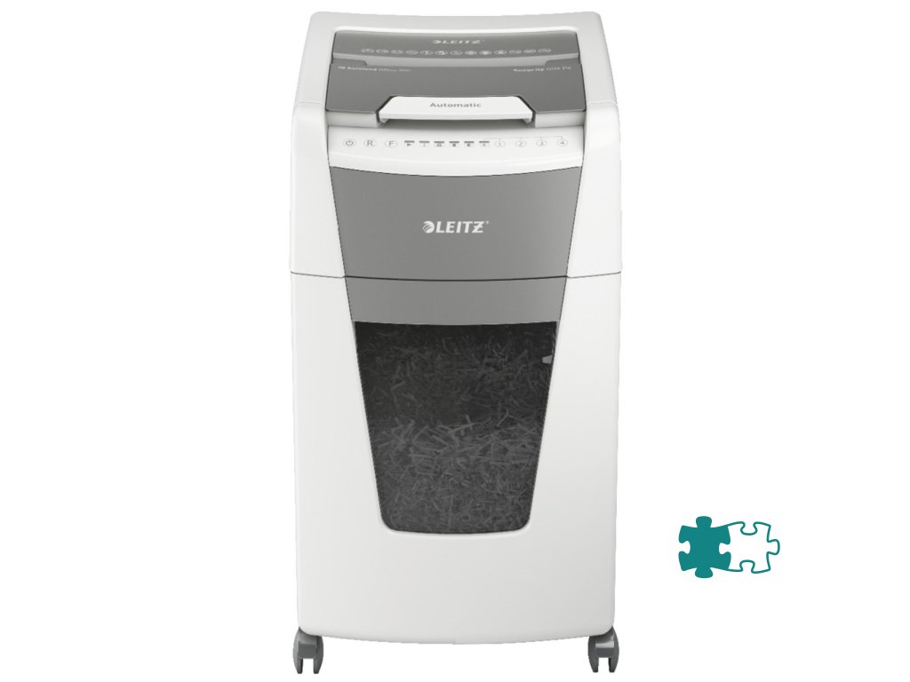 Plnoautomatická skartovačka na papier od firmy Leitz s jedinečnou čistou vyprázdňovacou funkciou. Je taká inteligentná, že potichu pracuje sama, len vložíte stoh papiera (vrátane kancelárskych sponiek a sponiek do zošívačky), zatvoríte veko a môžete ísť za svojou robotou. Ideálna na používanie v kanceláriách. Dôveryhodná a vysokovýkonná skartovačka s automatickým podávaním, s funkciou proti zaseknutiu papiera, tichá a s dlhou dobou prevádzky (60 minút). Automaticky skartuje 300 hárkov A4 na úrovni zabezpečenia P-4 (4 × 28 mm) s krížovým rezom do veľkého 60l koša. Jednoduché ovládanie pomocou dotykových prvkov.