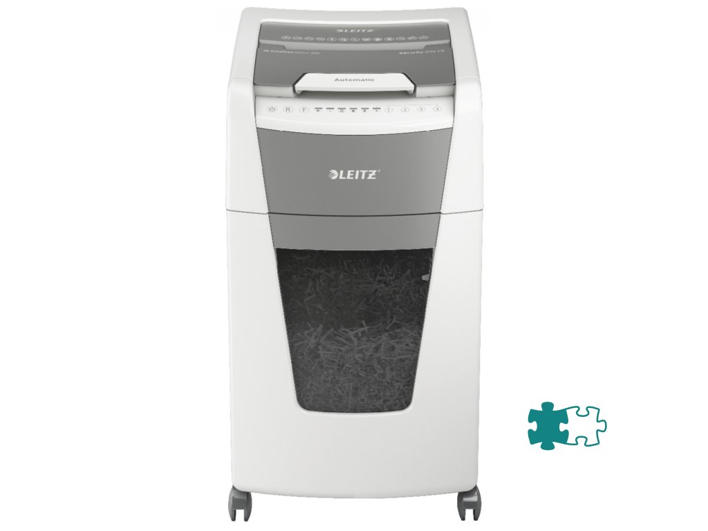Plnoautomatická skartovačka na papier od firmy Leitz s jedinečnou čistou vyprázdňovacou funkciou. Je taká inteligentná, že potichu pracuje sama, len vložíte stoh papiera (vrátane kancelárskych sponiek a sponiek do zošívačky), zatvoríte veko a môžete ísť za svojou robotou. Ideálna na používanie v kanceláriách. Mimoriadne dôveryhodná a vysokovýkonná skartovačka s automatickým podávaním, s funkciou proti zaseknutiu papiera, tichá a s dlhou dobou prevádzky (60 minút). Automaticky skartuje 300 hárkov A4 na úrovni zabezpečenia P-5 (2 × 15 mm) s mikrorezom do veľkého 60l koša. Jednoduché ovládanie pomocou dotykových prvkov.