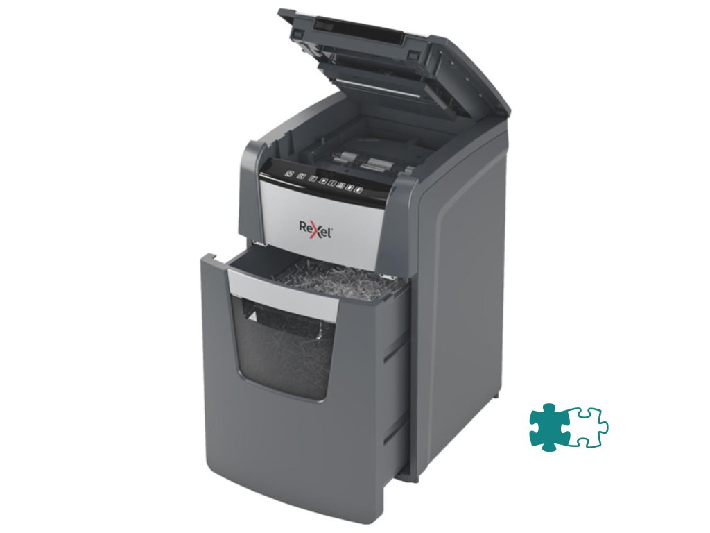 Skartovačka Optimum AutoFeed 130X automaticky skartuje až 130 listov papiera A4 (80 g/m2) krížovým rezom P-4 (4 × 28 mm). Táto skartovačka s automatickým podávaním je sofistikovaný kancelársky drvič s výsuvným košom s objemom 44 l. Nie je potrebné ručne vkladať papier alebo vopred odstraňovať svorky a kancelárske sponky, táto automatická skartovačka papiera urobí všetko za vás.Automatické podávanie až 130 hárkov papiera formátu A4 (80 g/m2) naraz. Otvor na manuálne plnenie až po 8 hárkoch.