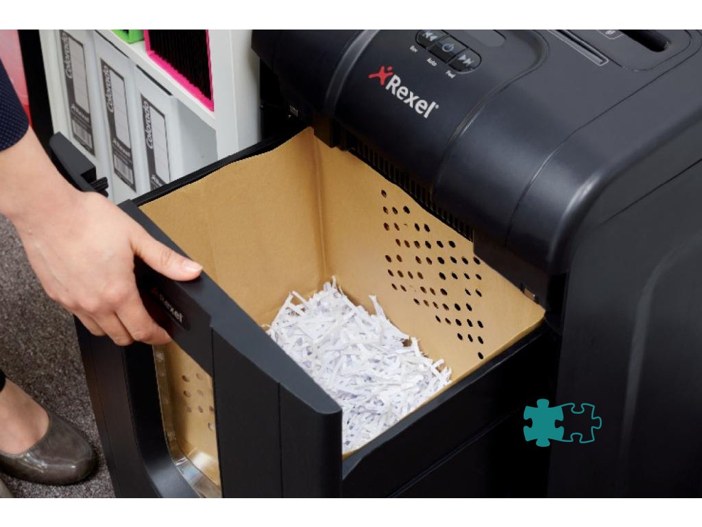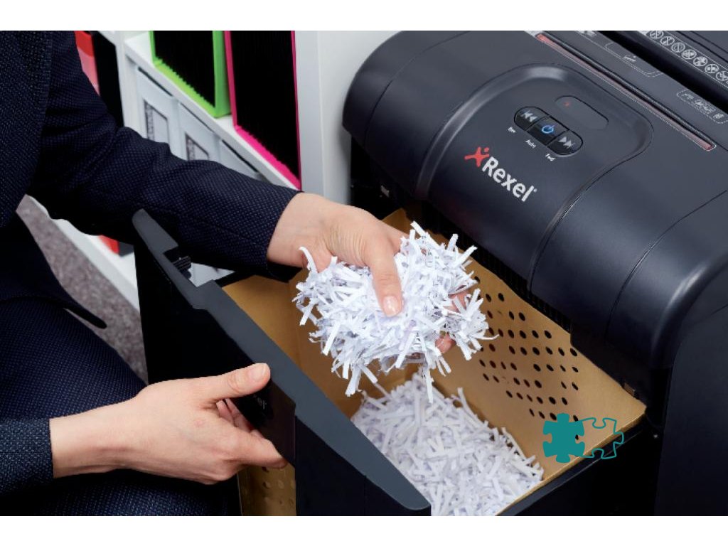 Bez uviaznutia, bez ťažkostí, bez neporiadku! Skartovačka RSX1834 s technológiou Mercury™ Jam Free s nepretržitým snímaním skartuje až 18 listov (80 g/m2) na krížovo rozrezané čiastočky 4 × 40 mm (utajenie typ 4). Má odpadový kôš s objemom 34 litrov.