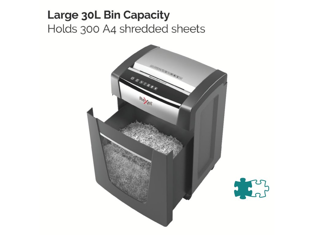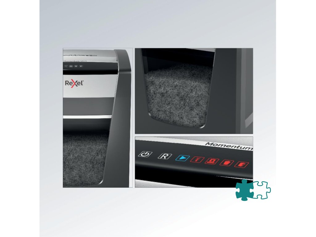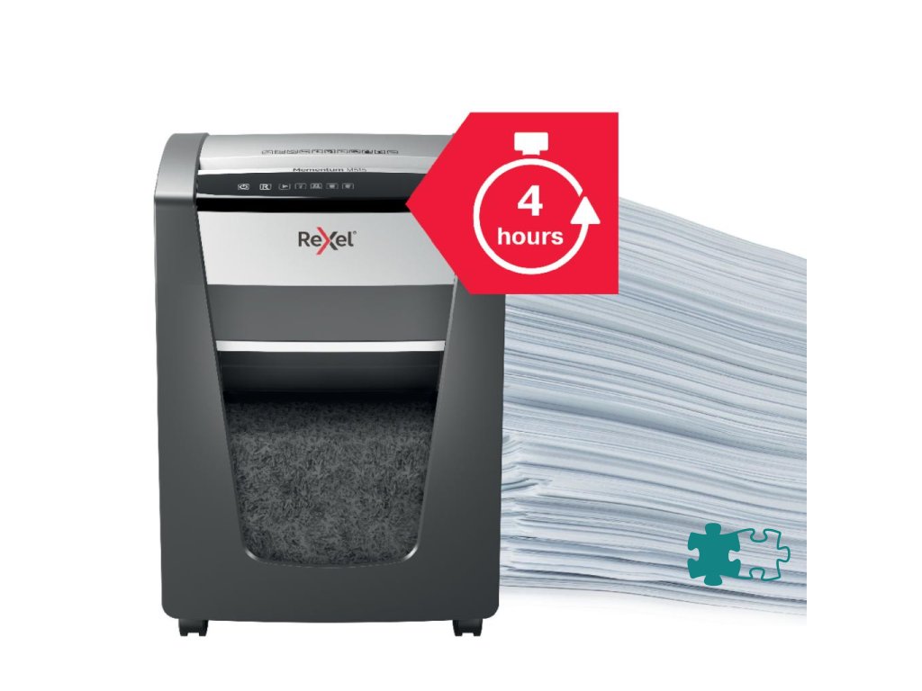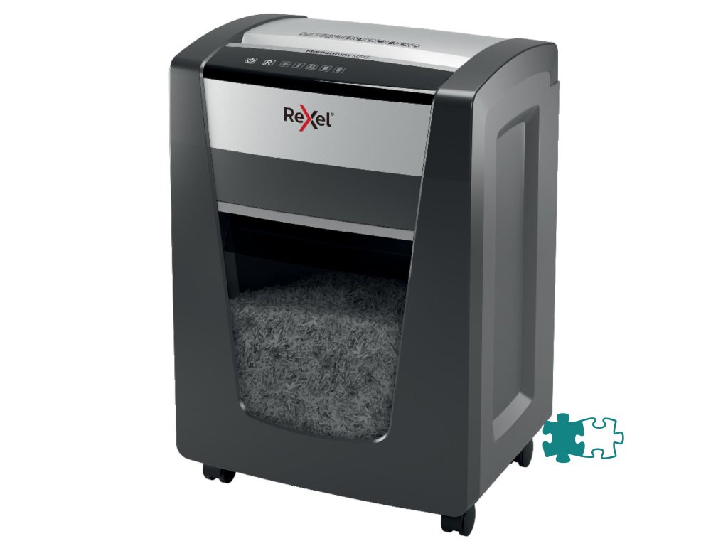 Nezastaviteľná skartovačka! Rexel Momentum M515 skartuje až 15 hárkov naraz a vydrží v nepretržitom chode 4 hodiny, vhodný na použitie v menších kanceláriách. Technológia proti zaseknutiu papiera garantuje neprerušované skartovanie. Mikrorez na úrovni zabezpečenia P5 reže papier na mikročasti s veľkosťou 2 × 15 mm, takže sa ich vojde viac do odpadového koša, než sa zaplní. Dotykové ovládanie pre jednoduché a intuitívne ovládanie. Objemný kôš s kapacitou 30 l pojme 300 hárkov A4.