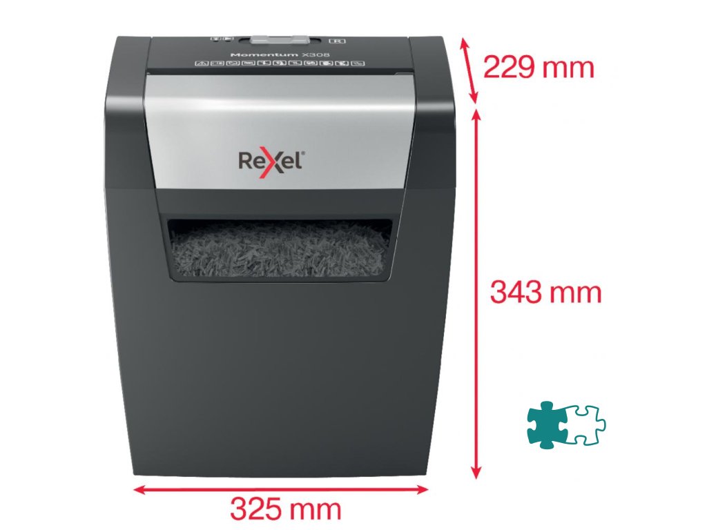 Nezastaviteľná skartovačka! Rexel Momentum X308 skartuje až 8 hárkov naraz a vydrží v nepretržitom chode 3 minúty, vhodná na použitie doma. Krížový rez na úrovni zabezpečenia P3 reže papier na časti s veľkosťou 5 × 42 mm. Odpadový kôš s kapacitou 15 l pojme 100 hárkov A4.