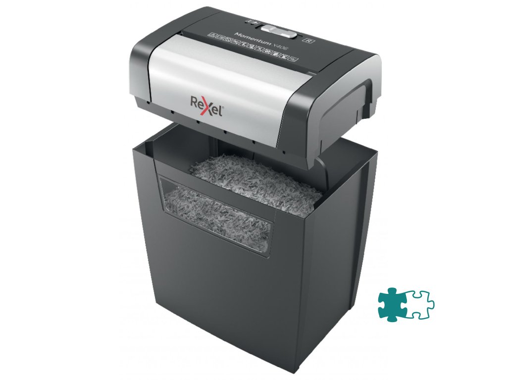 Nezastaviteľná skartovačka! Rexel Momentum X406 skartuje až 6 hárkov naraz a vydrží v nepretržitom chode 3 minúty, vhodná na použitie doma. Krížový rez na úrovni zabezpečenia P4 reže papier na malé časti s veľkosťou 4 × 28 mm. Odpadový kôš s kapacitou 15 l pojme 125 hárkov A4.