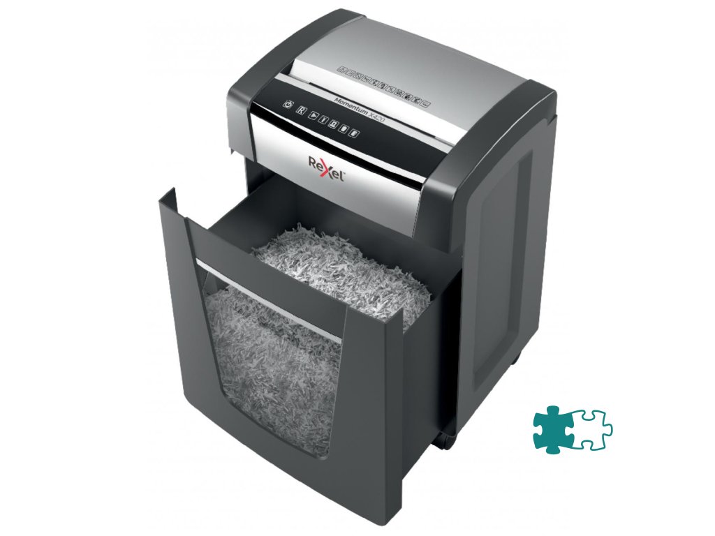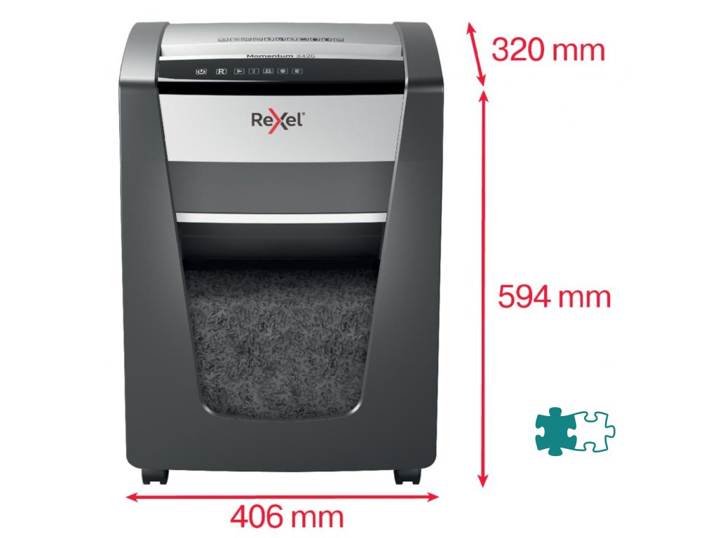 Nezastaviteľná skartovačka! Rexel Momentum X420 skartuje až 20 hárkov naraz a vydrží v nepretržitom chode 4 hodiny, vhodný na použitie v menších kanceláriách. Technológia proti zaseknutiu papiera garantuje neprerušované skartovanie. Krížový rez na úrovni zabezpečenia P4 reže papier na časti s veľkosťou 4 × 40 mm. Dotykové ovládanie pre jednoduché a intuitívne ovládanie. Objemný kôš s kapacitou 30 l pojme 275 hárkov A4.