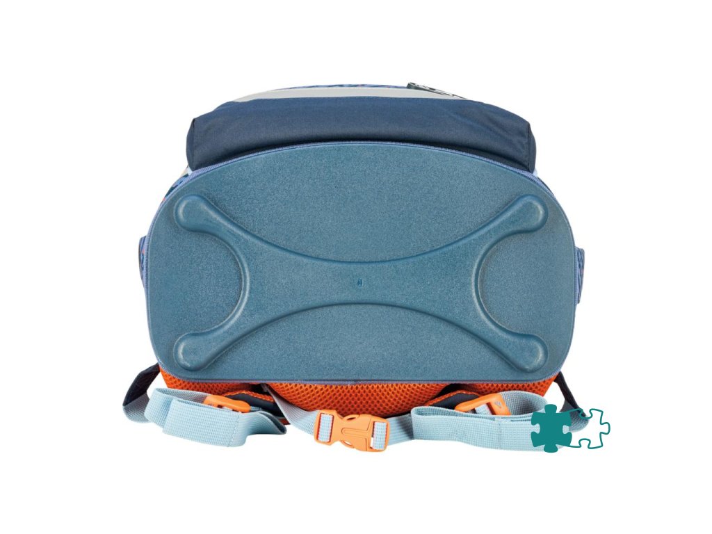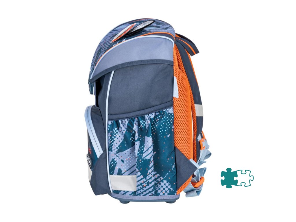 Školská taška bez výbavy, s anatomicky tvarovaným polstrovaným chrbtom, širokými nastaviteľnými ramennými popruhmi, hrudným popruhom, predným vreckom, dvomi bočnými vreckami, reflexnými prvkami Oralite, 1x aplikácia na suchý zips, 1 x dekoratívny prvok. Hmotnosť 750 g, objem 15 l, rozmery: 36 x 28 x 21 cm.Dodatočné parametre