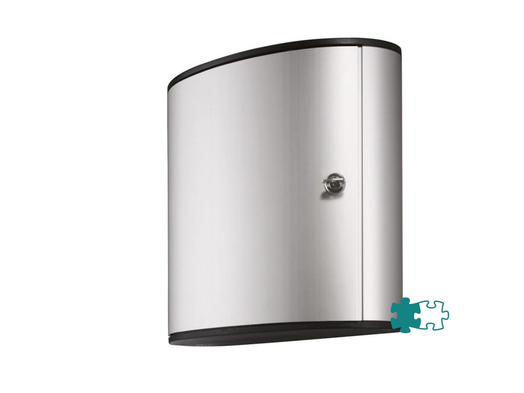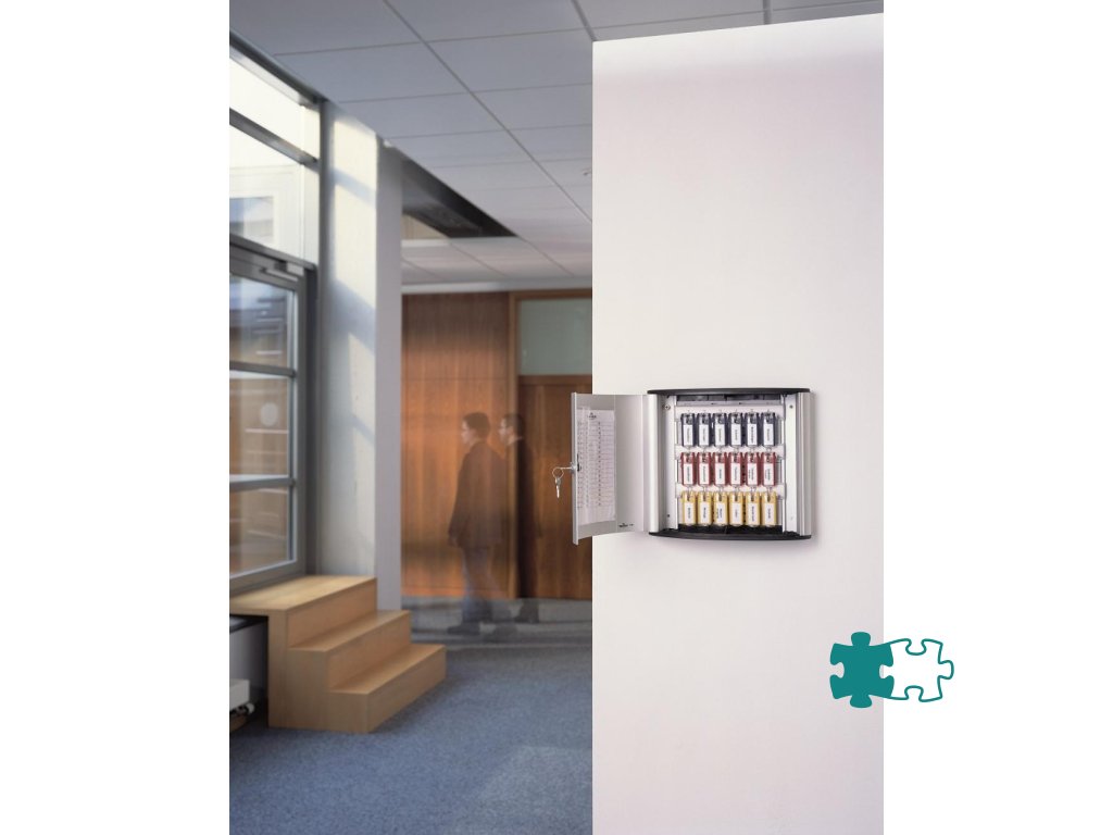Skrinka na 18 kľúčov s dvierkami, otvárajúcimi sa z dôvodu lepšej obsluhy v 180° uhle. Jednoduchá montáž na stenu. Súčasťou balenia je montážna sada, 2 bezpečnostné kľúče a 6 menoviek na kľúče v rôznych farbách. Farba strieborná.Výška: 28 cm