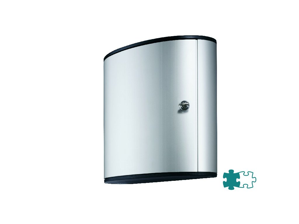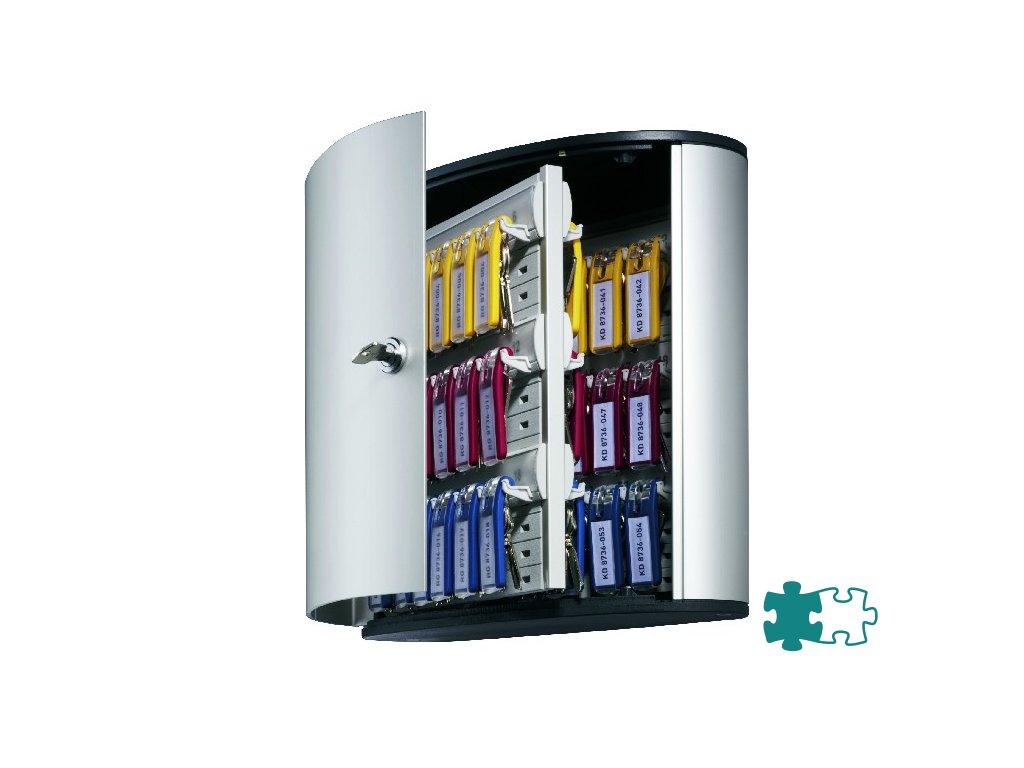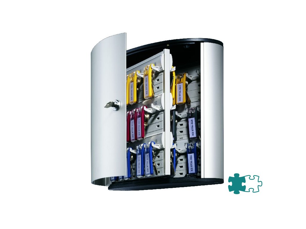 Skrinka na 54 kľúčov s dvierkami, otvárajúcimi sa z dôvodu lepšej obsluhy v 180° uhle. Jednoduchá montáž na stenu. Súčasťou balenia je montážna sada, 2 bezpečnostné kľúče a 6 menoviek na kľúče v rôznych farbách. Farba strieborná.Výška: 28 cm