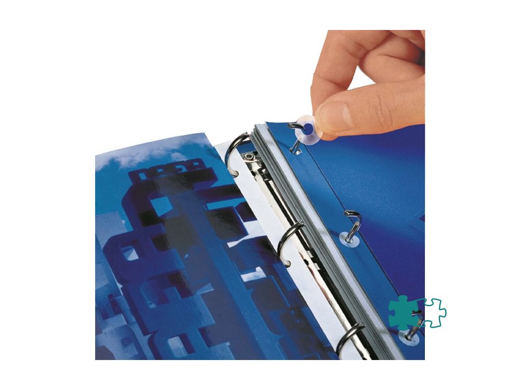 Samolepiace krúžky na opravu a ochranu často používaných dokumentov v krúžkových viazačoch. Materiál biele PVC prekryje prípadné trhliny po obvode dierovania.Farba: biela