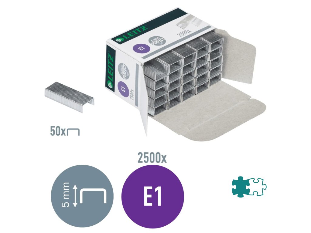 Vyrobené z extra pevnej ocele. Odporúčané pre elektrickú zošívačku Leitz New NeXXt WOW. K zošitiu až 10 listov (80 g/m2). Krabička obsahuje: 2500 spiniek Prémiová kvalita, odporúčané do elektrickej zošívačky Leitz 5532, 5566. Dĺžka nožičky spinky 5 mm.Dodatočné parametre