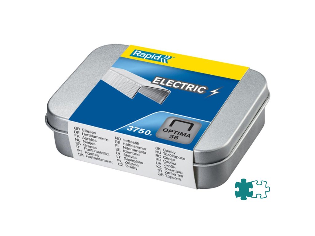Ultraostré drôtiky Optima 56 sú vyrobené z kvalitnej ocele a ľahko prerazia až 20 hárkov. V spojení s elektrickými zošívačkami Rapid Optima Grip a Optima 20 zaručujú presné zošívanie bez zasekávania. K dispozícii v baleniach po 3750 ks. Dodávajú sa v šikovnej hliníkovej plechovke s bezpečne uzatvárateľným viečkom. Špeciálne drôtiky pre elektrické zošívačky Rapid Optima Grip a Optima 20.Dodatočné parametre