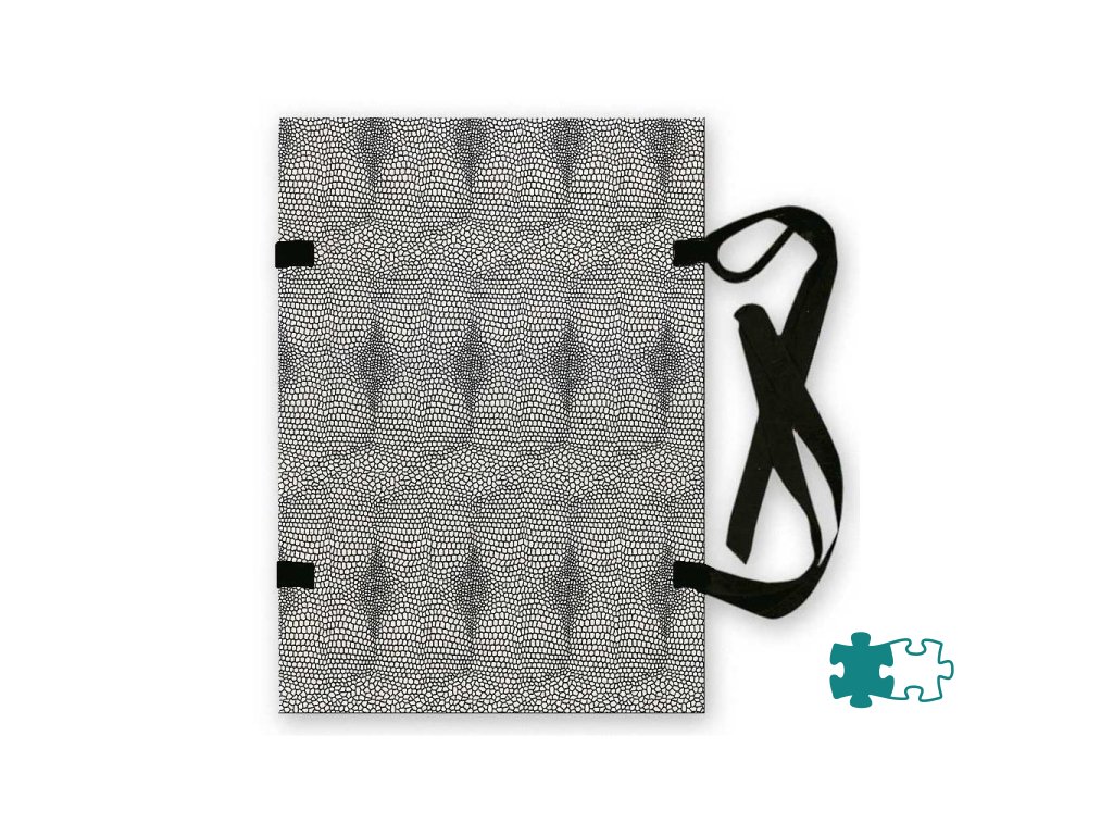 Jednostranne poťahované kartónové dosky bez chrbta, spojené šnúrkami. Vyrobené zo strojnej lepenky s gramážou 1 050 g. Prevedenie hadia koža. Formát A3. Väčšie balenie 25 ks.Farba: čierna/biela