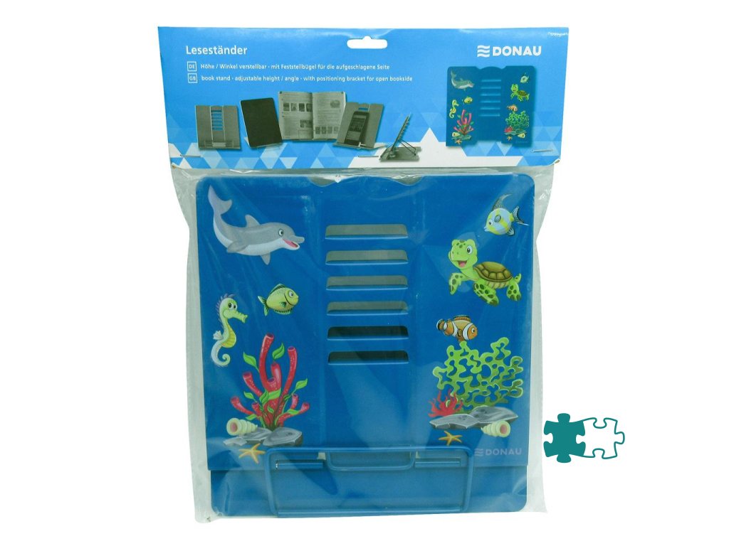 Kvalitný stojan na čítanie z lakovaného kovu, s potlačou zvieratiek, vhodný aj pre ťažké knihy a tablety, s protišmykovými gombíkmi, nastaviteľná výška/uhol sklonu v 5 stupňoch, pri nepoužívaní sa zloží na plocho pre úsporu miesta pri preprave a úložný priestor, s uzamykacou konzolou na otvorenú stranu, všestranný v škole, kancelárii, kuchyni alebo ako stojan na noty, rozmer základne 21 x 16,5cm, výška 15,7 cm, motív Zvieratká, modrý.Dodatočné parametre