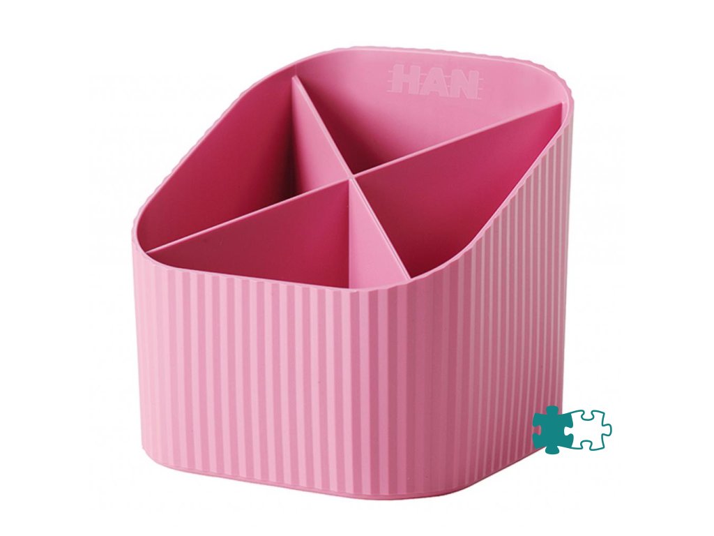 Stojan so 4 priehradkami v modernom dizajne a trendových farbách. Materiál vysokokvalitný PP. Rozmery 111 × 121 × 106 mm. Farba ružová.Dodatočné parametre