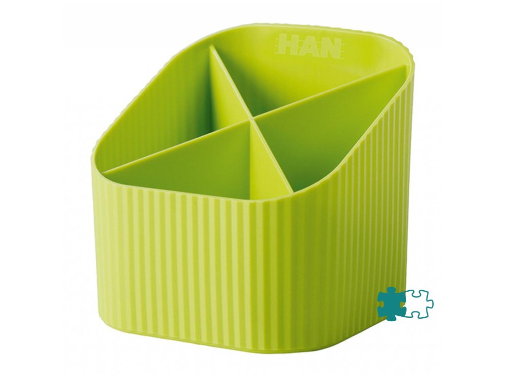 Stojan so 4 priehradkami v modernom dizajne a trendových farbách. Materiál vysokokvalitný PP. Rozmery 111 × 121 × 106 mm. Farba zelená.Dodatočné parametre