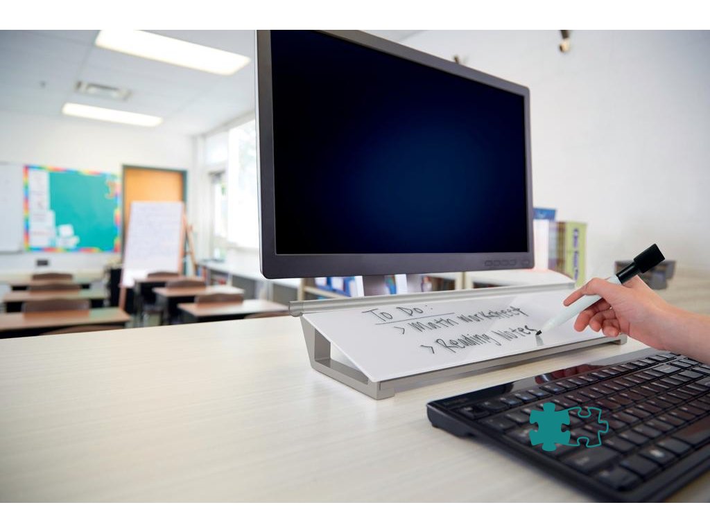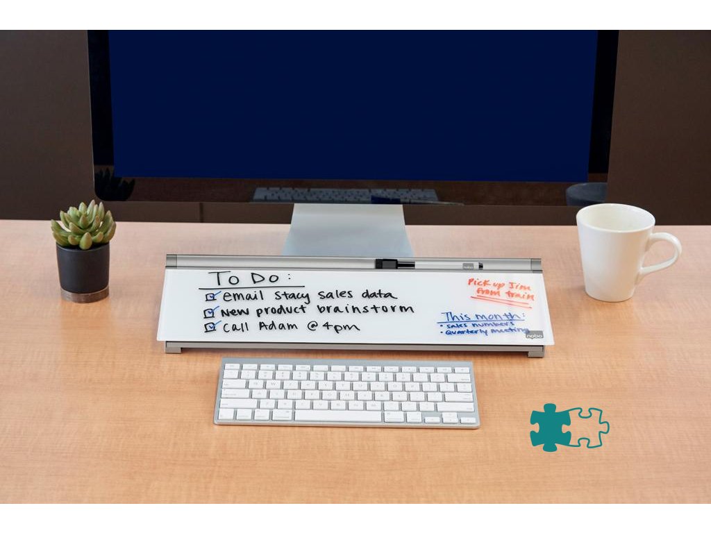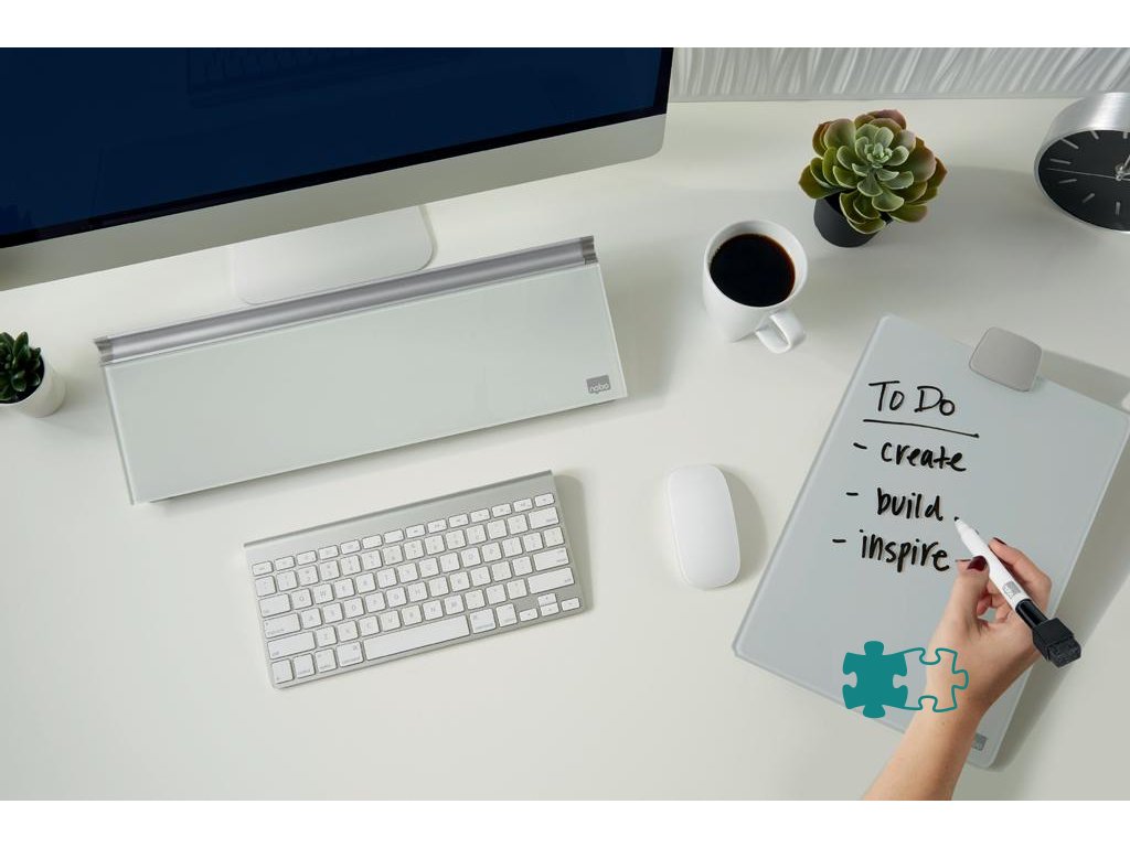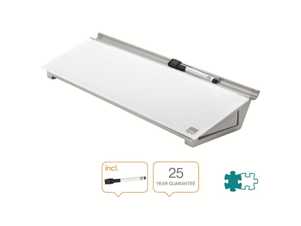 Sklenená stolová podložka je unikátny doplnok na stôl na písanie poznámok a odkazov. Bezrámčekový dizajn a sklenený povrch tabule ponúka najvyššiu odolnosť proti šmuhám od atramentu a škrabancom. Písacia plocha je vždy poruke a písanie poznámok je tak veľmi pohodlné. Výrobok sa perfektne hodí do priestoru za klávesnicou. Skrytý úložný priestor vnútri vám pomôže si udržať čistý pracovný stôl. Dodávané s minipopisovačom Nobo s hubkou na viečku.Dodatočné parametre