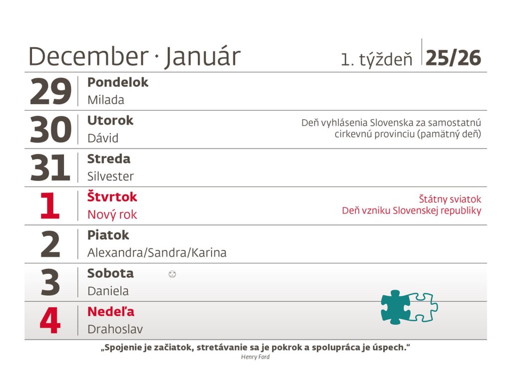 Formát kalendára: 21,1 x 14,8 cmKalendárium: slovenské týždenné riadkové s citátmi