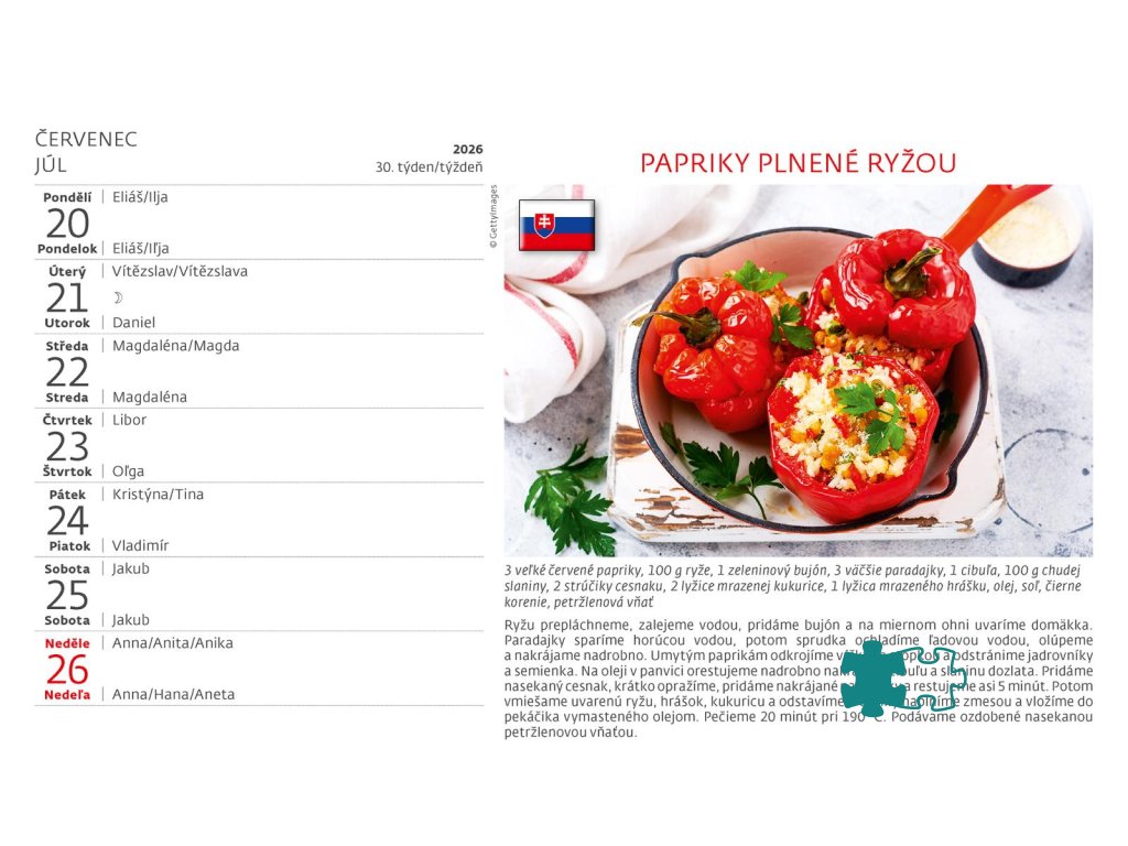 Stolový kalendár riadkový 22,6x13,9 cm - Česko-slovenská kuchárka 2026