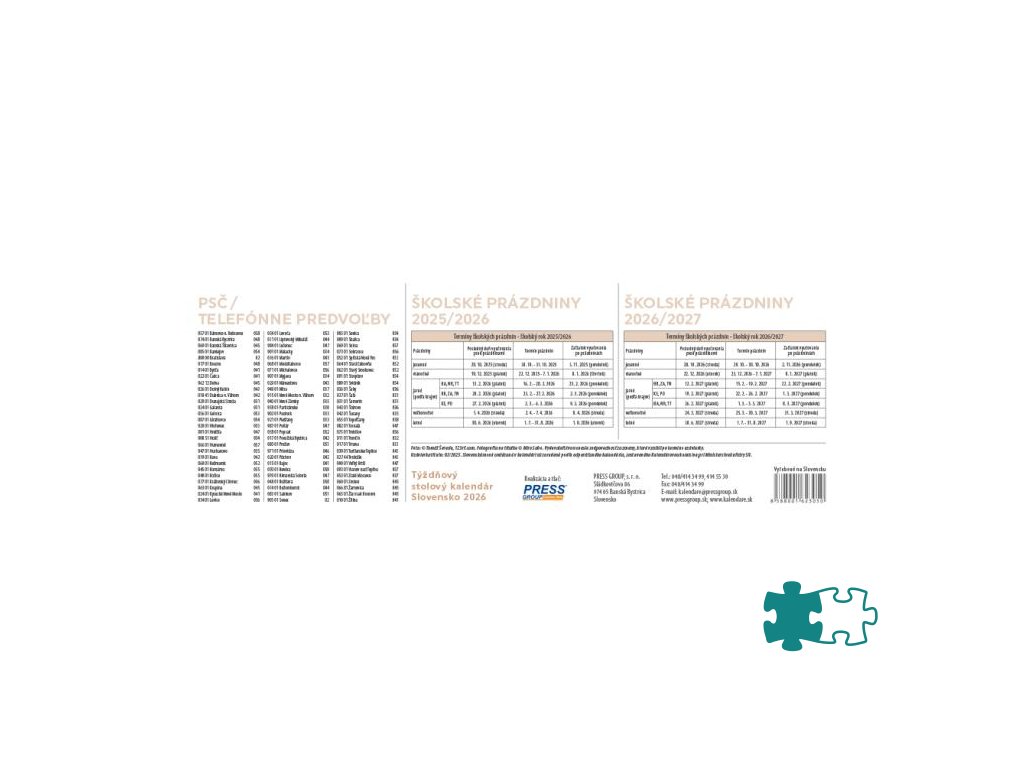 Stolový kalendár stĺpcový 30 x 12 cm - Slovensko 2026