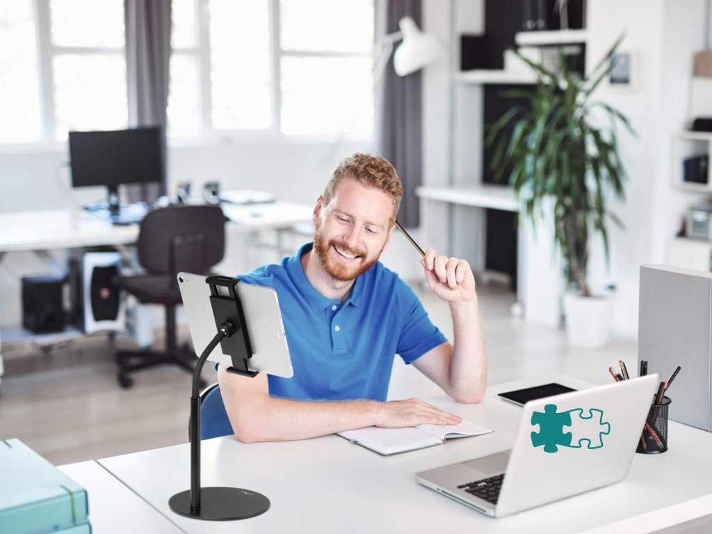 Stojan na stôl pre tablety a mobilné telefóny od 4,7-13`. Plynulá otočnosť a nastavenie výšky pomocou flexibilného ramena.