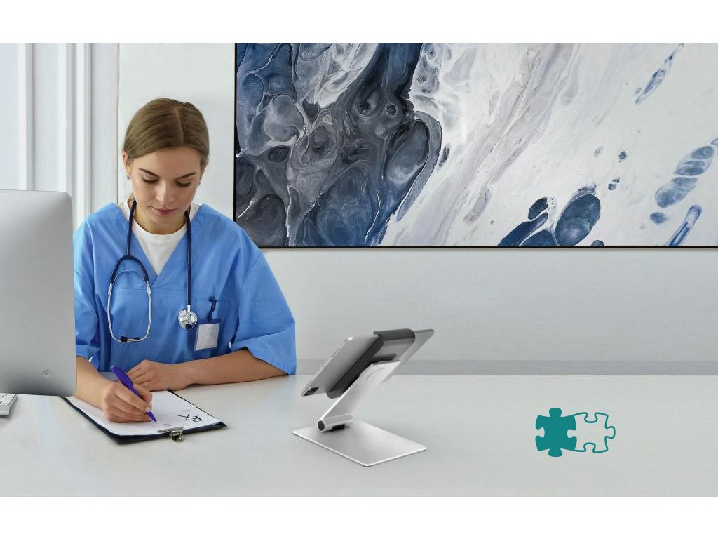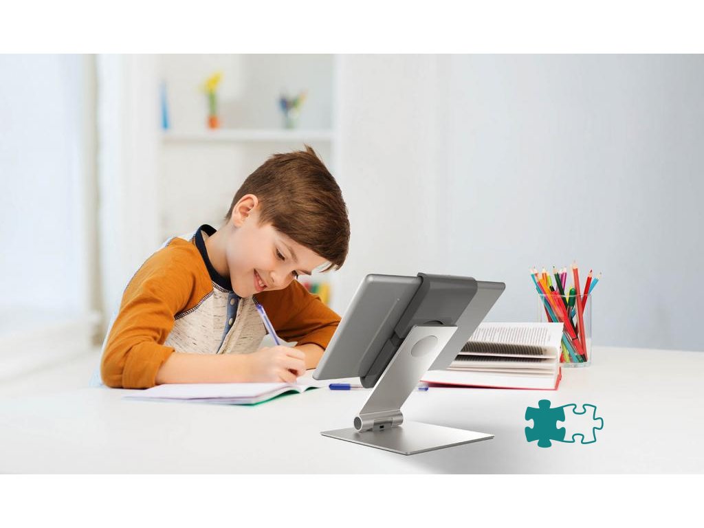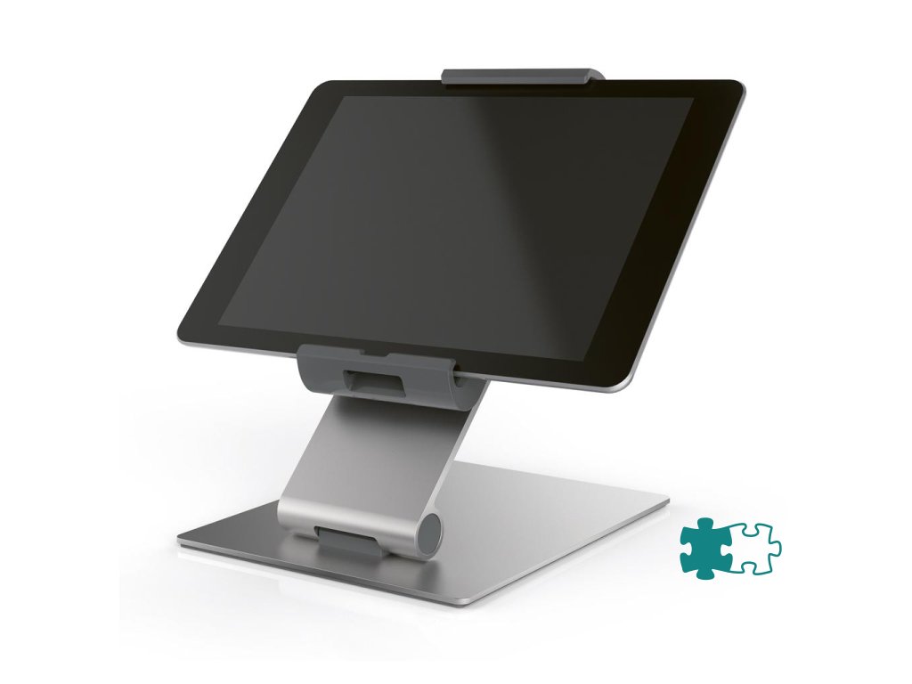 Rotačný stojan 360 ° na stôl na tablety od 7 do 13 ` na výšku alebo na šírku s jednoduchým vkladaním a vyberaním tabletu. Uchytávacie body po 90 °, ochrana pred bočným vybratím tabletu, premenlivý uhol sklonu ramena od 0 ° do + 88 °, symetrické otváranie držiaka od 160 do 275 mm. Otvor v stojane slúži ako výstup pre nabíjací kábel. Uzamknutie držiaka pomocou špeciálneho kľúča. Materiál hliník, ASB a oceľový plech. Dodatočná ochrana proti krádeži pomocou káblového zámku (nie je súčasťou balenia). Rozmery 155 × 242 × 183 mm.Dodatočné parametre