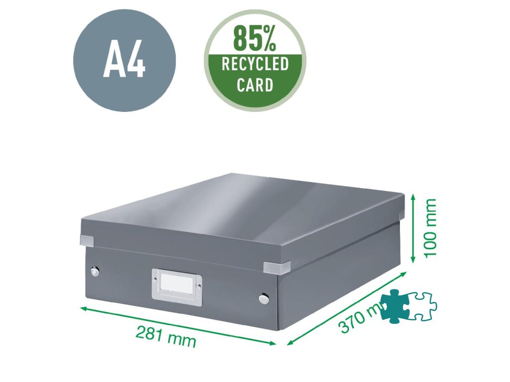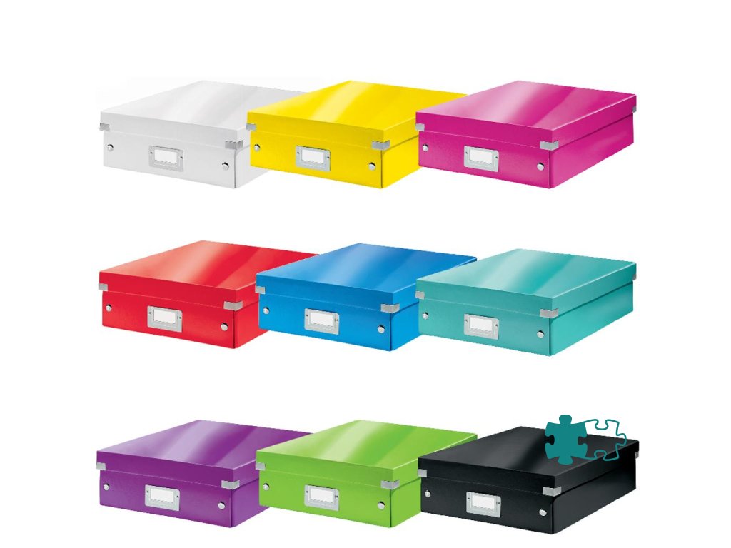 Archivačná krabica s vekom vo výrazných farbách WOW. Pevné a stabilné prevedenie. Materiál silný drevnatý kartón potiahnutý laminom. Rámik na štítok, vystužené rohy krabice a spojovacie cvoky vyrobené z kovu. Inteligentná skladacia konštrukcia - rýchle a jednoduché zloženie bez nutnosti použitia skrutiek a opätovné rozloženie, keď krabice práve nepoužívate. Dodávané rozložené. Väčšie balenie 6 ks. Krabica na usporiadanie káblov, nabíjačiek, slúchadiel, fotografi í a ďalších drobností. Na vylepšenie usporiadania obsahu slúži vnútorný systém priehradiek, s ktorým môžete rozdeliť krabicu na 2 alebo 3 časti a zabrániť tak miešaniu obsahov v jednotlivých častiach. Veľkosť M. Robustné kovové úchyty na jednoduchý prenos. Rozmery 280 × 100 × 370 mm.Dodatočné parametre