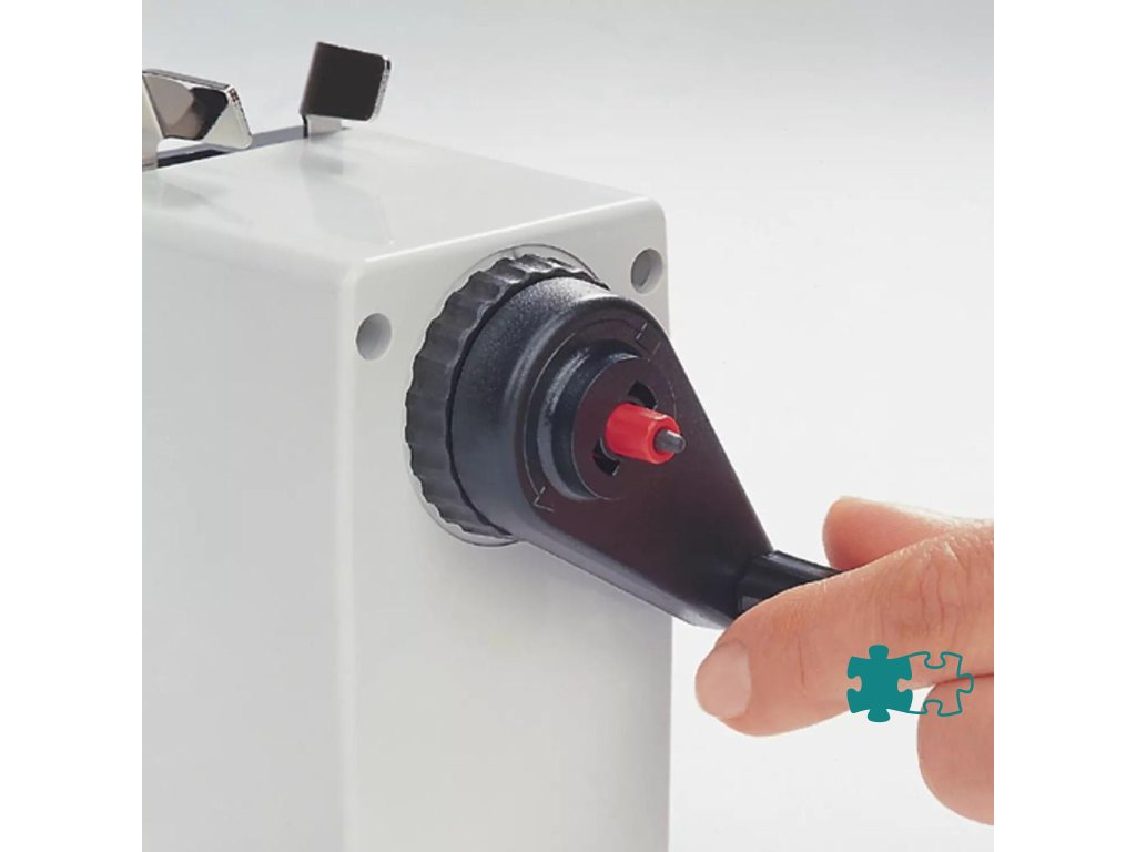 Značkové mechanické strúhadlo s vysokokvalitnými oceľovými nožmi a nastaviteľným tvarom hrotu, z plastu, na tuhy a ceruzky priemeru do 12 mm v atraktívnom dizajne s automatickým prichytením ceruzky pri strúhaní a jej automatickým uvoľnením po zastrúhaní.Kovová objímka prítlaku zabezpečuje dlhú životnosť.