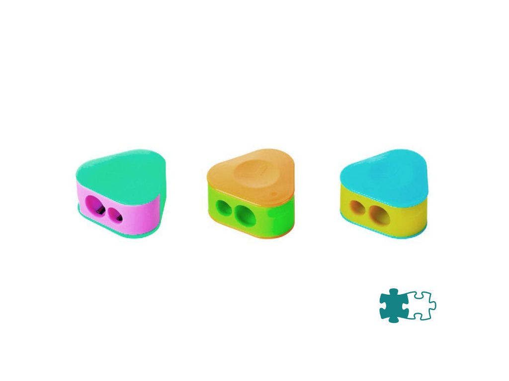 Trojuholníkové plastové strúhadlo KEYROAD, dvojité. Balenie: blister. Farba: mix farieb.Dodatočné parametre