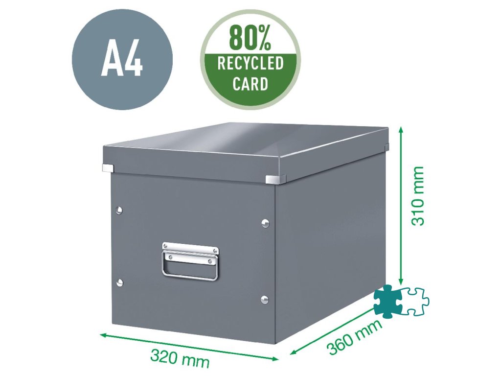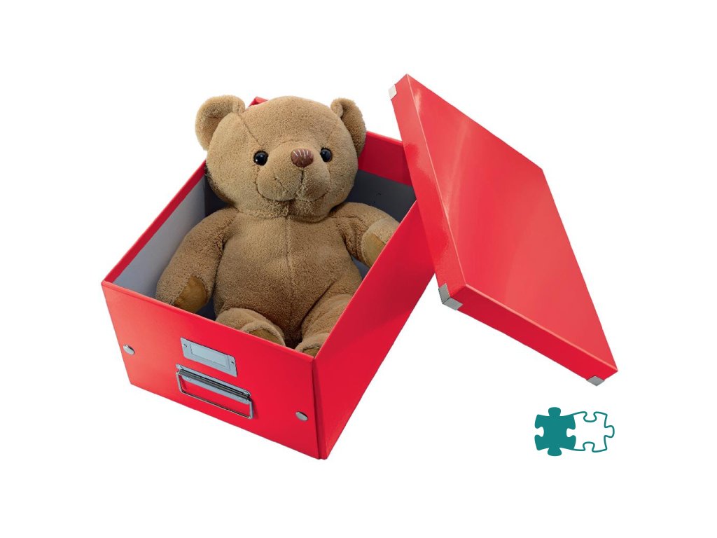 Atraktívna a štýlová krabica na ukladanie vysokých predmetov alebo vecí s oblým tvarom. Rýchle a jednoduché poskladanie vďaka gombíkovému mechanizmu a možnosti zloženia (ak nie je krabica potrebná, je možné ju rozložiť a zaberie menej miesta). Moderný dizajn a farby osviežia vašu kanceláriu aj domov. Lesklý laminovaný povrch vytvára prvotriedny vzhľad, zvyšuje odolnosť a ľahko sa čistí. Odolné kovové príchytky na pohodlnú manipuláciu. Patentovaná konštrukcia zaručuje vyššiu ochranu proti náhodnému otvoreniu krabice pri prenášaní ťažkých vecí. Materiál pevný kartón s polypropylénovou lamináciou. Rozmery 320 x 310 x 360 mm. Farba červená.Dodatočné parametre