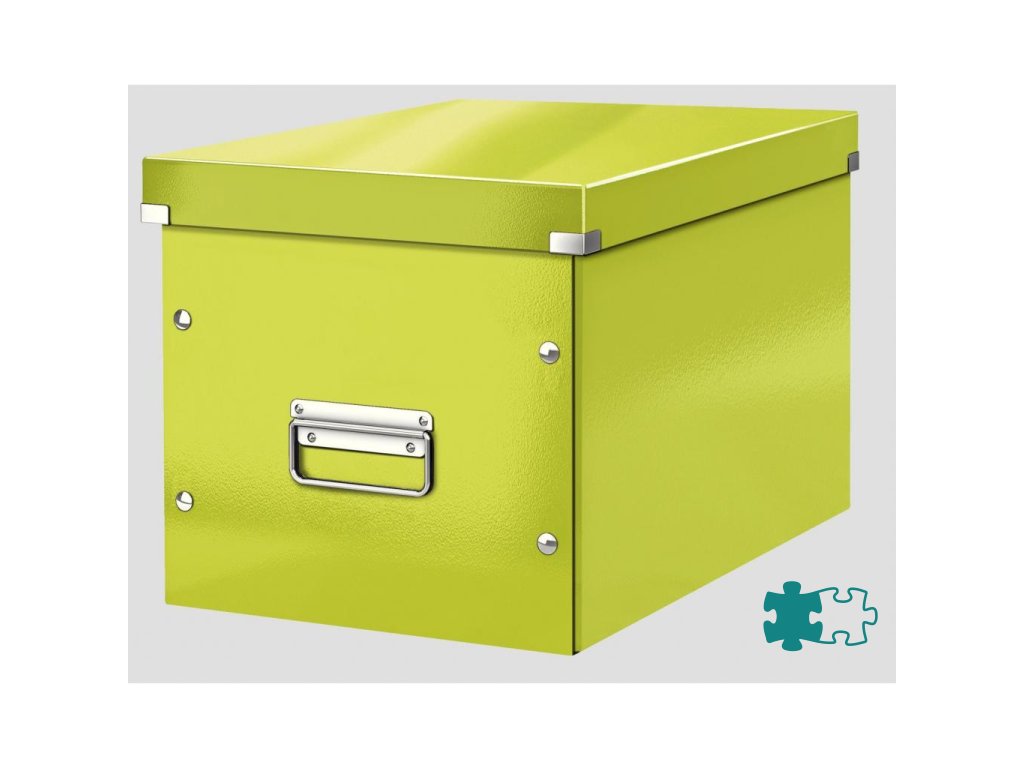 Atraktívna a štýlová krabica na ukladanie vysokých predmetov alebo vecí s oblým tvarom. Rýchle a jednoduché poskladanie vďaka gombíkovému mechanizmu a možnosti zloženia (ak nie je krabica potrebná, je možné ju rozložiť a zaberie menej miesta). Moderný dizajn a farby osviežia vašu kanceláriu aj domov. Lesklý laminovaný povrch vytvára prvotriedny vzhľad, zvyšuje odolnosť a ľahko sa čistí. Odolné kovové príchytky na pohodlnú manipuláciuPatentovaná konštrukcia zaručuje vyššiu ochranu proti náhodnému otvoreniu krabice pri prenášaní ťažkých vecí. Materiál pevný kartón s polypropylénovou lamináciou. Rozmery 320 x 310 x 360 mm. Farba metalická zelená.