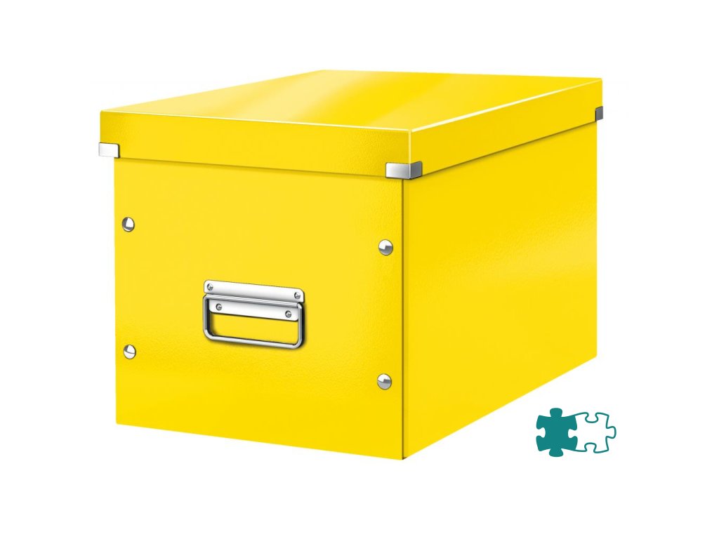 Atraktívna a štýlová krabica na ukladanie vysokých predmetov alebo vecí s oblým tvarom. Rýchle a jednoduché poskladanie vďaka gombíkovému mechanizmu a možnosti zloženia (ak nie je krabica potrebná, je možné ju rozložiť a zaberie menej miesta). Moderný dizajn a farby osviežia vašu kanceláriu aj domov. Lesklý laminovaný povrch vytvára prvotriedny vzhľad, zvyšuje odolnosť a ľahko sa čistí. Odolné kovové príchytky na pohodlnú manipuláciuPatentovaná konštrukcia zaručuje vyššiu ochranu proti náhodnému otvoreniu krabice pri prenášaní ťažkých vecí. Materiál pevný kartón s polypropylénovou lamináciou. Rozmery 320 x 310 x 360 mm. Farba žltá.