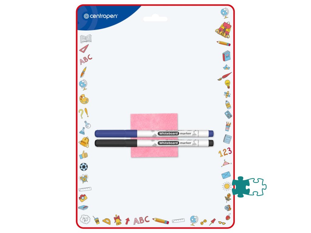 Obojstranne stierateľná tabuľka A4 s vytlačenými linajkami a štvorčekmi. Vhodná na nácvik písania, ale i kreslenia. Súčasťou balenia sú 2 značkovače art. 2507 a textília na zotieranie.Dodatočné parametre