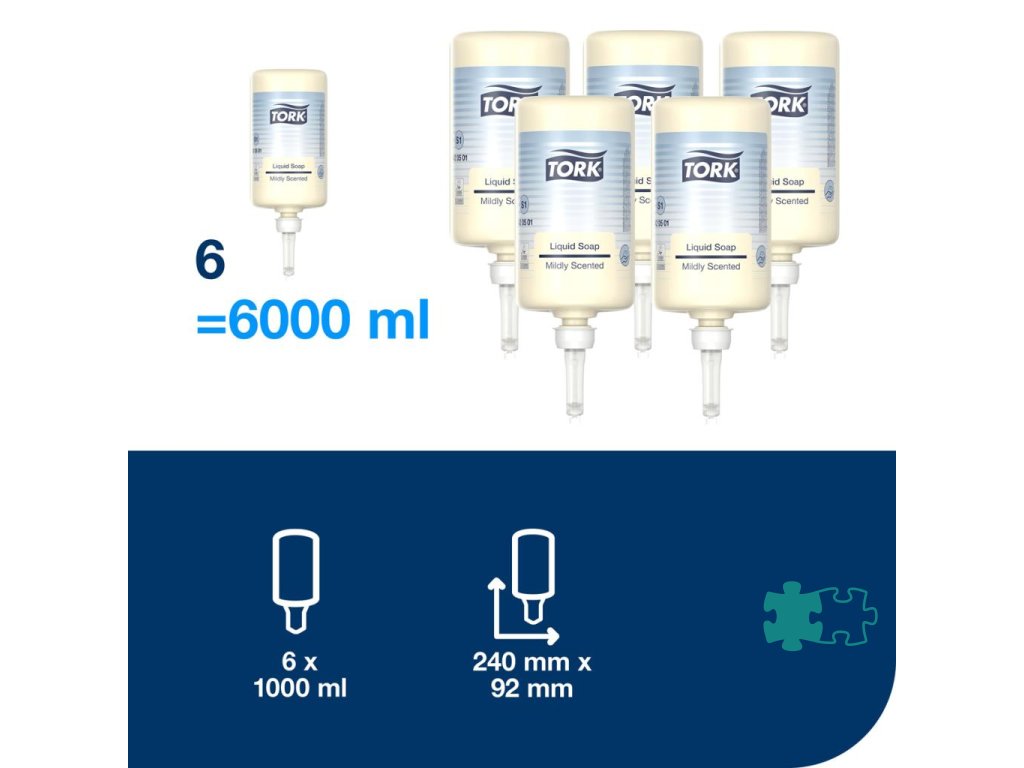 Jednorazová náplň tekutého mydla do dávkovačov TORK, ktorý je overený ako ľahko používateľný a všetkým oužívateľom poskytuje správnu hygienu rúk. Viacúčelové jemné tekuté mydlo sviežej vône, má vyživujúce a obnovujúce prísady, ktoré sú vhodné pre normálnu a suchú pokožku. Šetrné k pokožke. Zapečatená náplň s jednorazovou pumpou znižuje rizikokrížovej kontaminácie, ktorá môže nastať pri dopĺňaní zásobníka. Fľaša je recyklovateľná a zmenšuje sa so znižovaním obsahu, čím sa redukuje odpad. Farba svetložltá. Obsahuje 1 000 dávok. Objem 1000 ml.