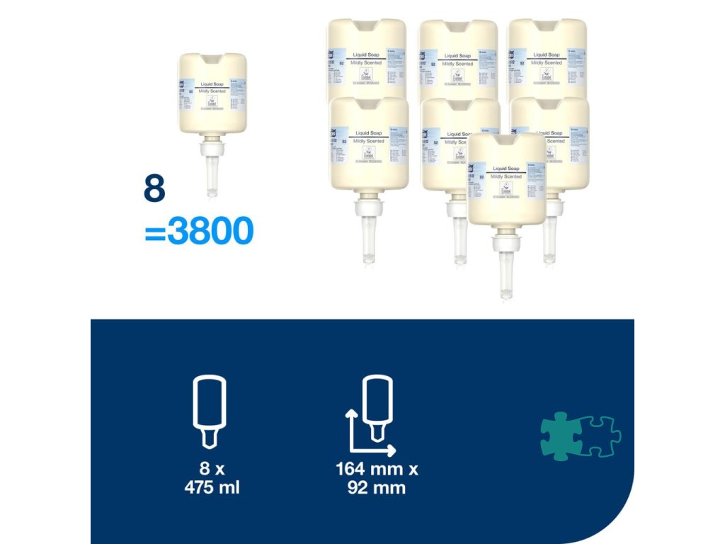 Jednorazová náplň tekutého mydla vhodná do mini dávkovačov TORK, ktoré sú overené ako ľahko používateľné a všetkým používateľom poskytujú správnu hygienu rúk. Vysokokvalitné mydlo, jednoduché dávkovanie. Poskytuje návštevníkom viacúčelové mydlo s čerstvou vôňou, ktoré je vhodné pre normálnu a suchú pokožku. Obsahuje vyživujúce a obnovujúce prísady jemné k pokožke na šetrné umytie rúk. Vzhľad s perličkami, svieža vôňa. Počet dávok 475. Objem 475 ml.